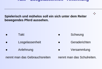 - Losgelassen zu sitzen, sich auf dem Pferd sicher und wohl zu fühlen